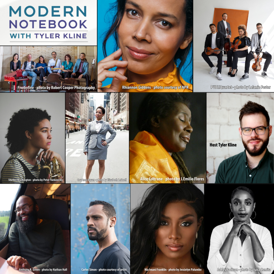This week’s Modern Notebook with Tyler Kline is a mix of music for Juneteenth, including Shelley Washington’s “BLACK MARY,” inspired by the Black American historical figure Stagecoach Mary; music by Courtney Bryan including her “Secondline for Black Love;” Nia Imani Franklin’s re-imagining of Aphrodite as “Afro-Dite;” and Alice Coltrane’s “Prema.”