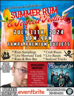 The Summer Rum & Seafood Festival returns to Wesley Chapel on July 13th, 4pm-9pm and is a large fundraiser for the North Tampa Bay Chamber of Commerce.