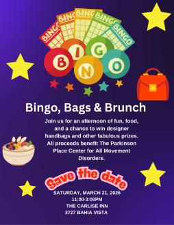BINGO, BAGS AND BRUNCH- Join us for an afternoon of fun, food and a chance to win designer handbags and other fabulous prizes. All proceeds benefit The Parkinson Place Center for All Movement Disorders