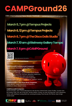 CAMPGround26, the international new music festival presented by Contemporary Art Music Project (CAMP), continues its three-day celebration of adventurous contemporary music (March 5–7, 2026) with CONCERT 3 at The Disco Dolls Studio on Friday, March 6 at 7:00 PM.