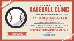 On Saturday, March 21, kids ages 7 to 12 are invited to participate in a hands on baseball clinic at Fossil Park Sports Complex led by 1982 World Series Champion John Stuper.