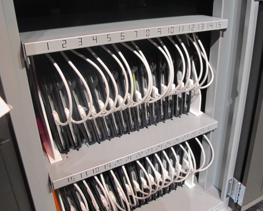 Those are like 21st-Century chalk boards that can can plug into the school’s network — and the Internet.