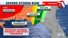 Another squall line of thunderstorms is expected to impact the northern half of Florida on Wednesday and Thursday.