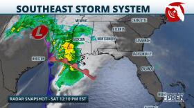 A storm system impacting the Central Gulf Coast is expected to create unsettled weather in Florida's Panhandle Saturday night and early Sunday. Damaging wind and isolated tornadoes will be possible as a broken line of thunderstorms tracks through the region.