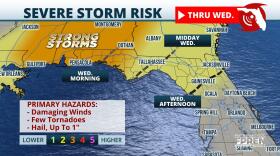 An approaching cold front will help provide the atmosphere with extra lift and could lead to strong storms through Wednesday in North Florida and the Panhandle.