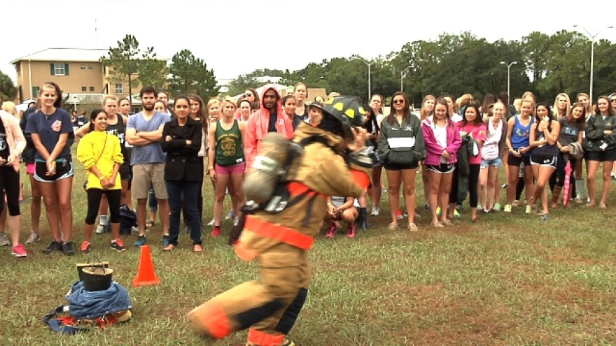 “We have five obstacle courses. All the obstacle courses mimic what firefighters go though in order to become a firefighter—their physical examination," said Jordan Romero, a member of the USF chapter of the Pi Kappa Alpha fraternity.