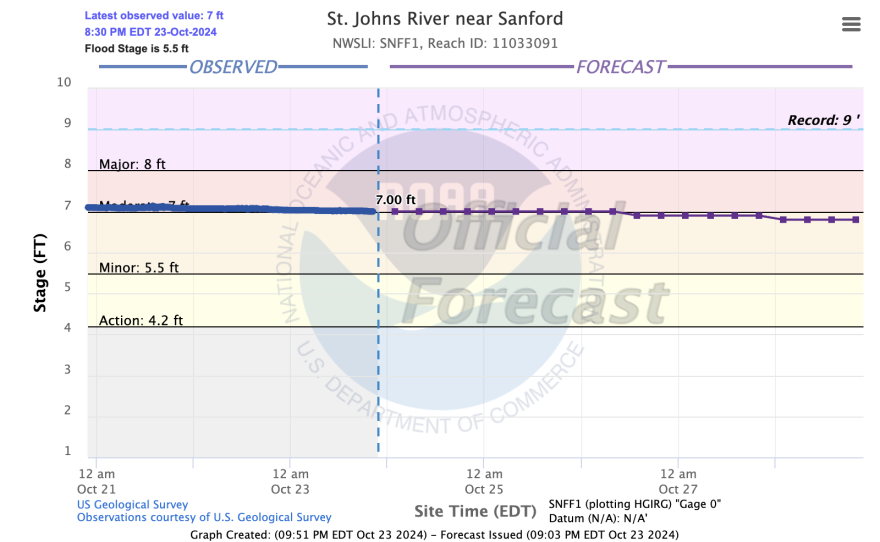 To compound the flooding, king tides and strong onshore flow off the Atlantic are working to add additional resistance to the river drainage process - which is causing the St Johns river to rise again.
