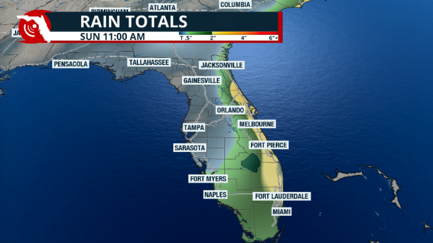 The heaviest showers and storms will impact the Space Coast on Thursday and become more spread out over the I-4 corridor on Friday. Through Saturday morning, there could be between 3 and 5 inches of rain, with some spots experiencing isolated amounts of up to 6 inches along the Space Coast. Saturday afternoon will become drier, and Sunday will be sunny, cooler, and much less humid. The weather is expected to remain stable, with sunny skies and comfortable temperatures, and humidity will be high for much of next week.